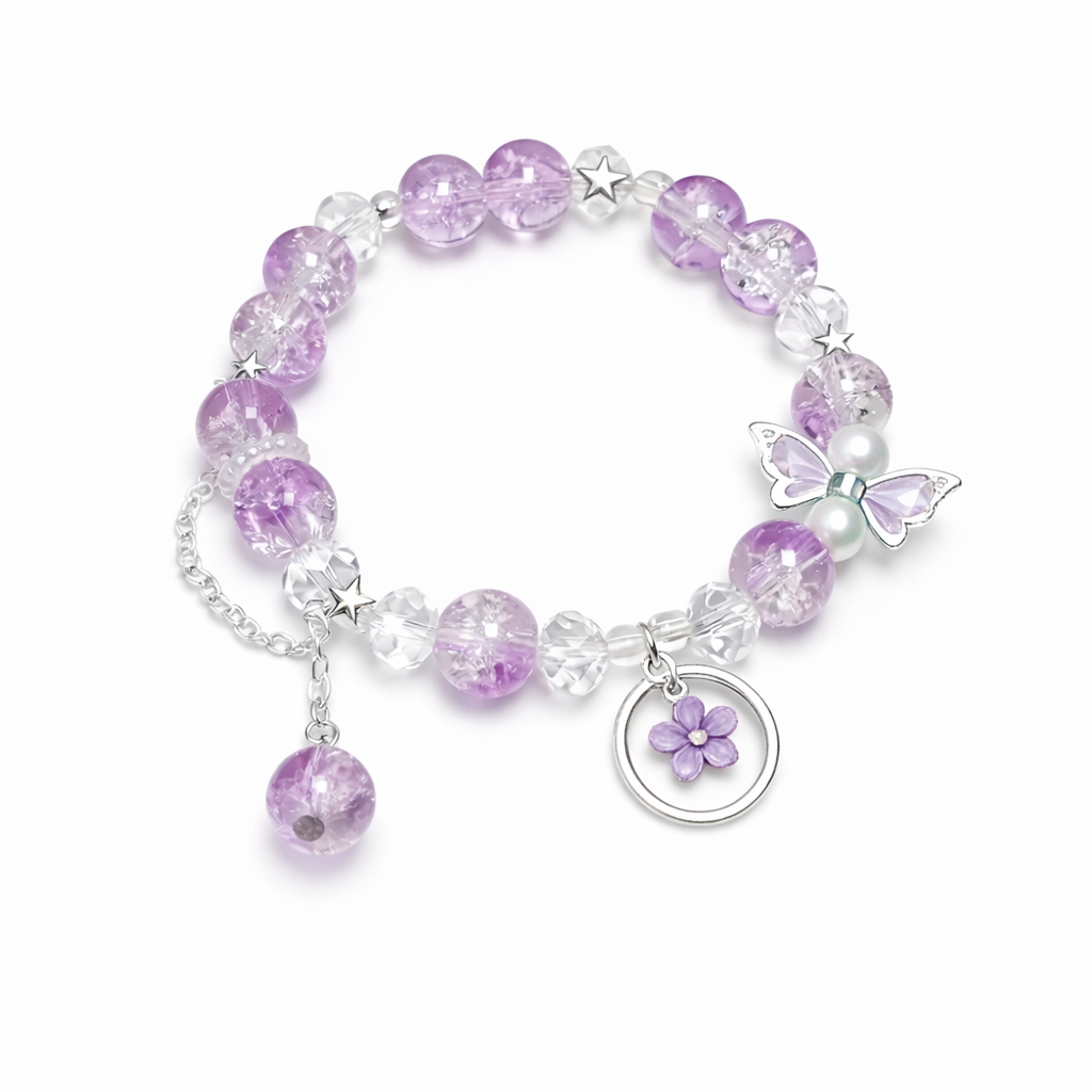 Purple-red crystal beads interact harmoniously with transparent accent beads, creating a gradual transition from light to deep tones. This layered design symbolizes growth from emotion to clarity, from uncertainty to understanding, and is believed to help release suppressed emotions, ease anxiety, and restore emotional balance.