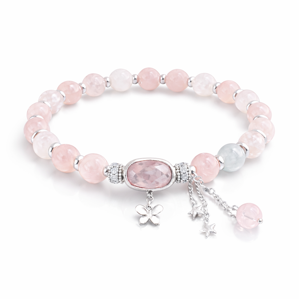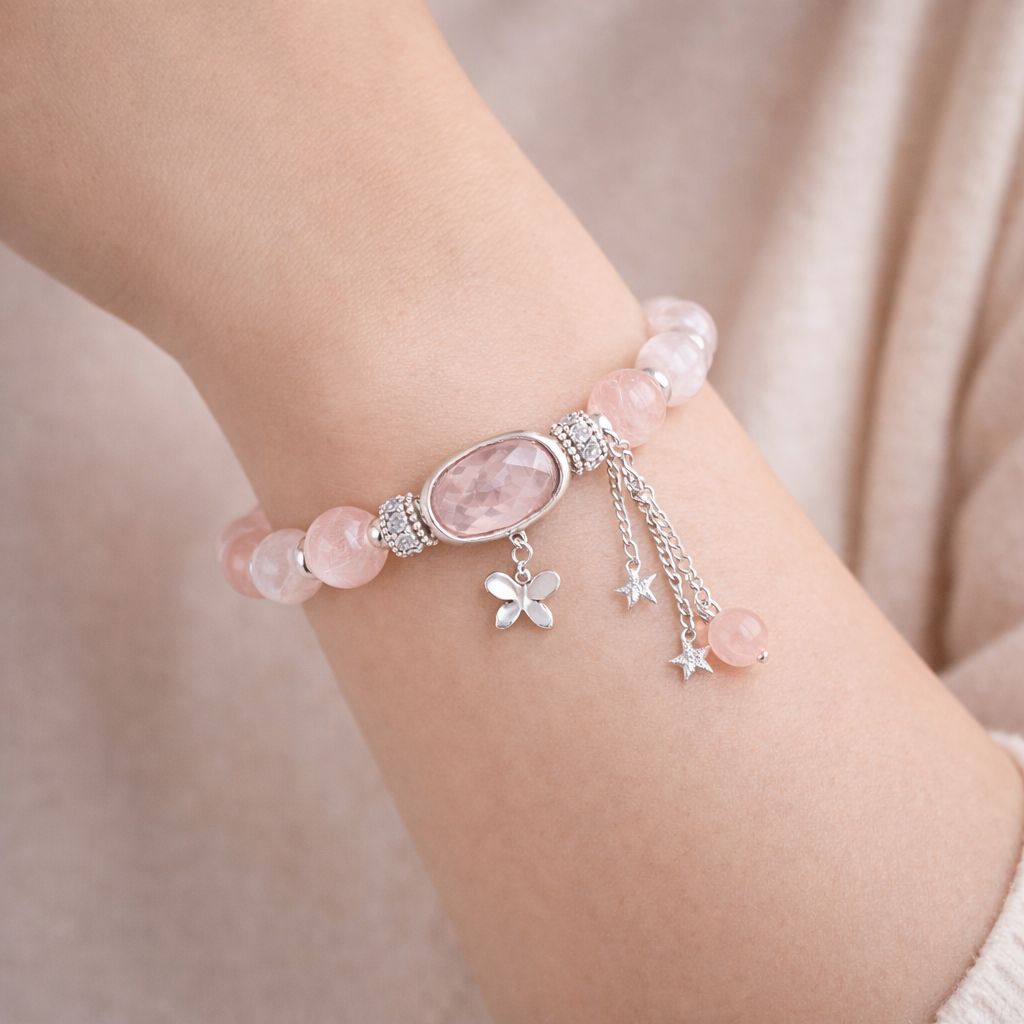 The day I saw this bracelet, my first thought wasnât whether it was pretty. I thought of her immediately. The softness of the pink crystal in the light reminded me of the way I look at herânever loud, never obvious, but always returning to my mind. The little butterfly and star charms hang quietly, almost unnoticed, yet always there, just like my feelings for herâno need for reminders, and never fading.