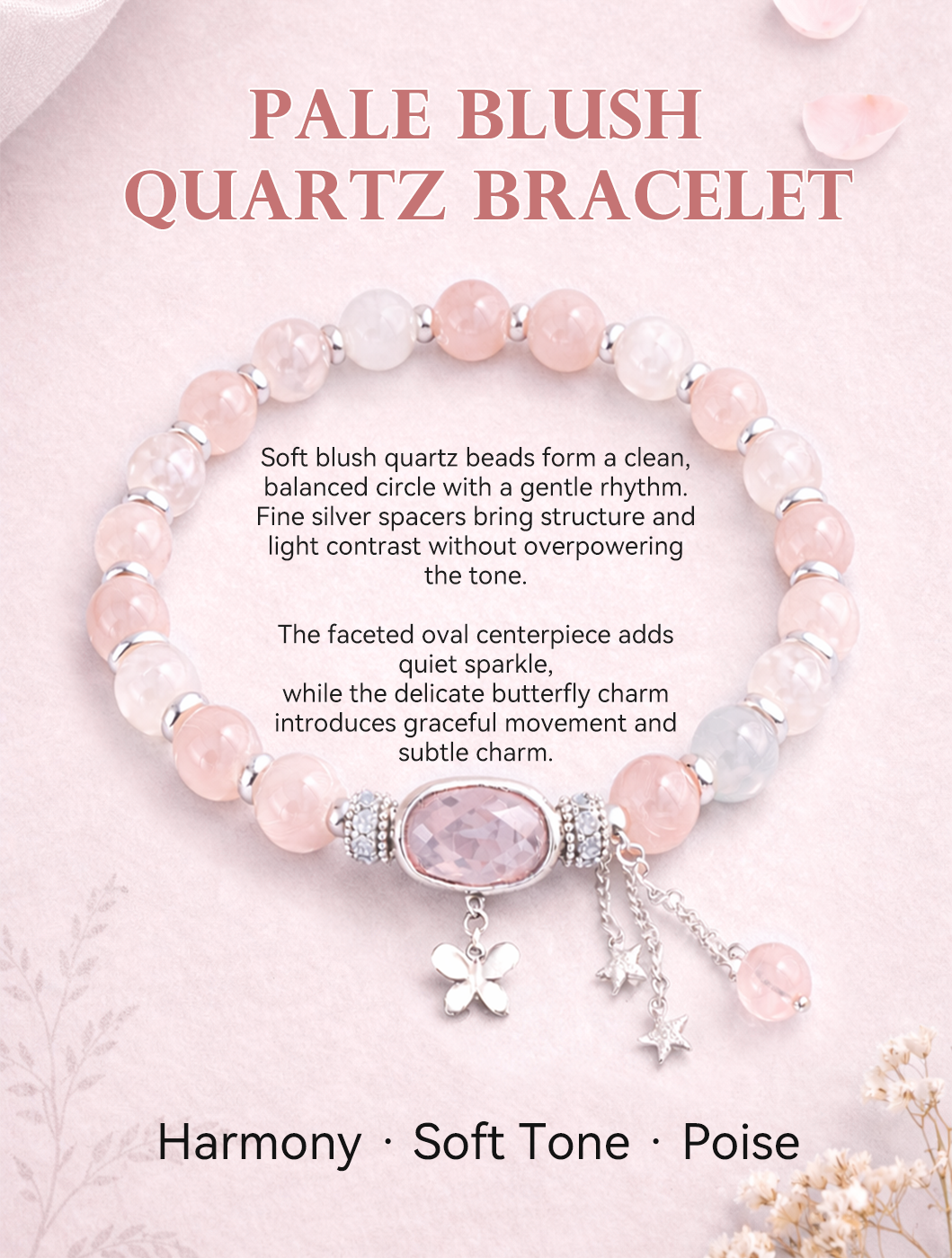 âIt looks very soft and gentle, and it suits me well. After wearing it, I found it even more beautiful than I expected. The pink crystal isnât overly sweetâitâs subtle and calming, and against the skin it gives off a clean, peaceful feeling. The oval center stone, along with the small butterfly and star charms beneath it, is delicately crafted. They move slightly as I walk, but never feel excessiveâif anything, they add a quiet sense of charm. When I wear it, I feel more relaxed. Iâm less anxious about relationships and no longer feel the need to rush or prove anything.